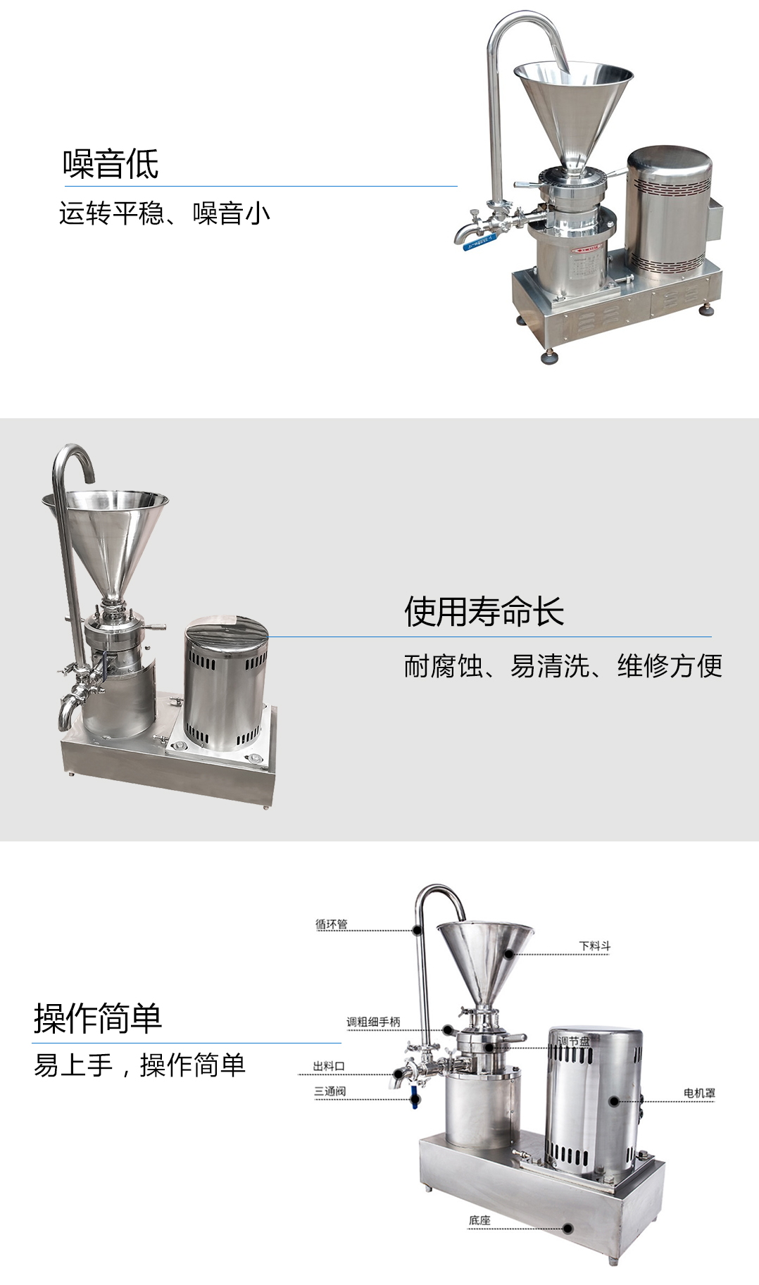2、膠體磨分立式、臥式、分體式等多種型號(hào)規(guī)格,同物料接觸部件均采用優(yōu)質(zhì)不銹鋼制成,動(dòng)靜磨片根據(jù)被處理物料的不同,其齒形有所區(qū)別,但材質(zhì)均選用不銹鋼工具制造。