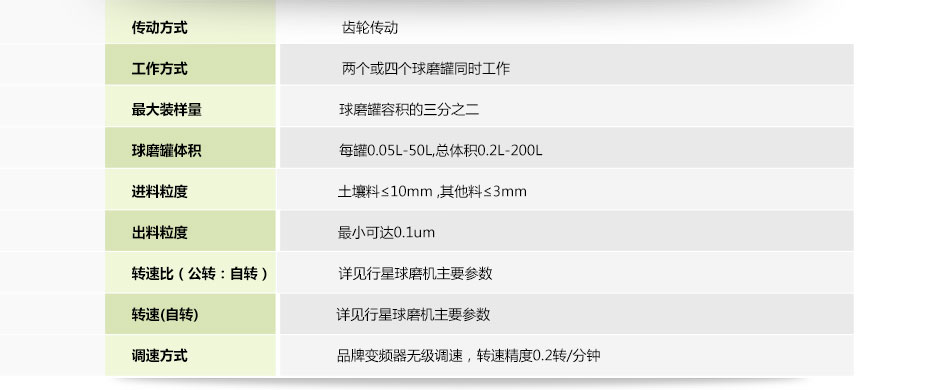 七、輕型臥式行星式球磨機(jī)參數(shù)